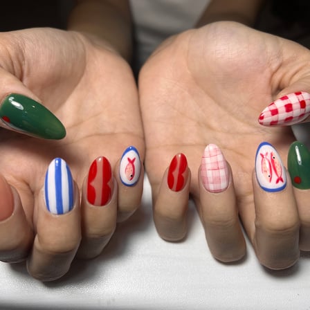 I'm a nail artist that focuses on manicure, press on nails, and nail art! I love making pretty, whimsical nails with watercolor, 3D gels, pat pat gel.